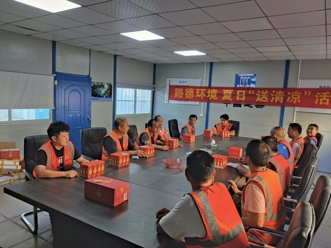 ? 時下正值夏季高溫時節(jié)與施工高峰期,為切實做好防暑降溫工作,預(yù)防職業(yè)性中暑事件發(fā)生,確保一線員工安全生產(chǎn)與身體健康。近期,路德環(huán)境在各項目部開展了“夏日送清涼”慰問活動。