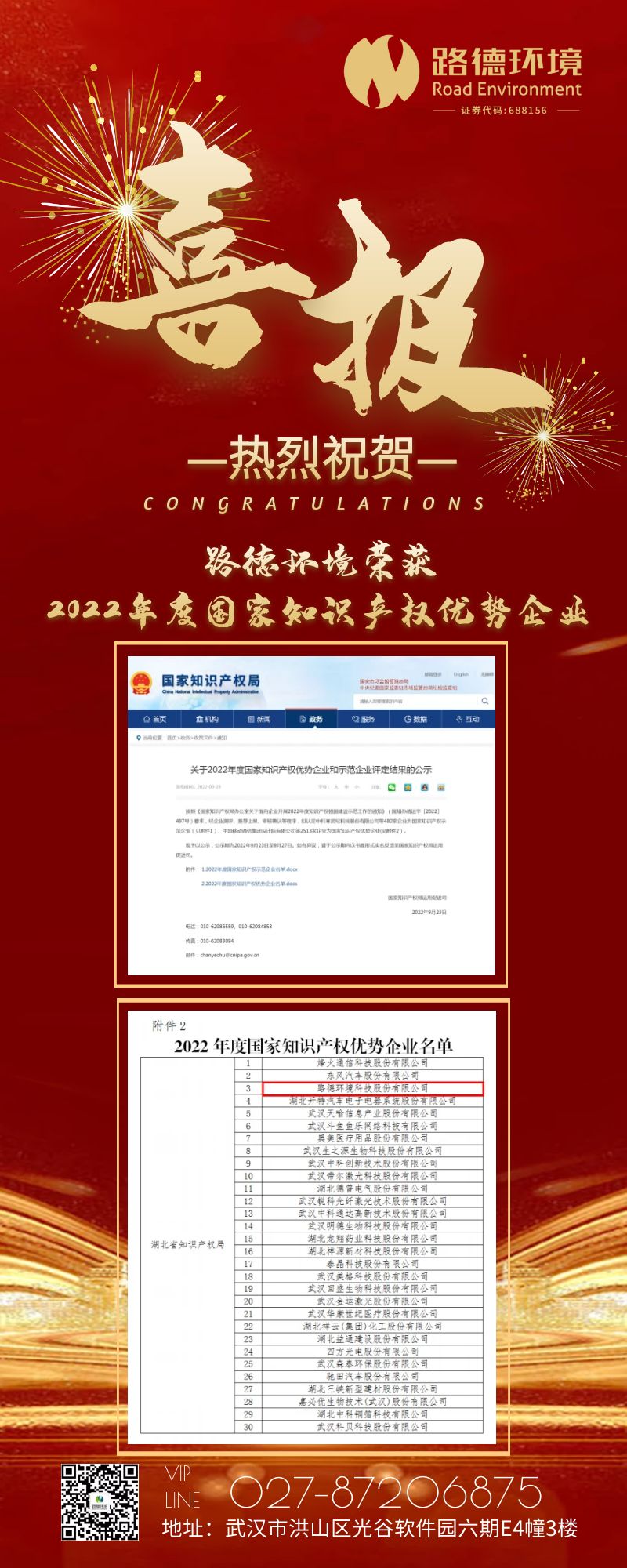 【路德·喜報】熱烈慶祝路德環(huán)境榮獲2022年度國家知識產(chǎn)權(quán)優(yōu)勢企業(yè)