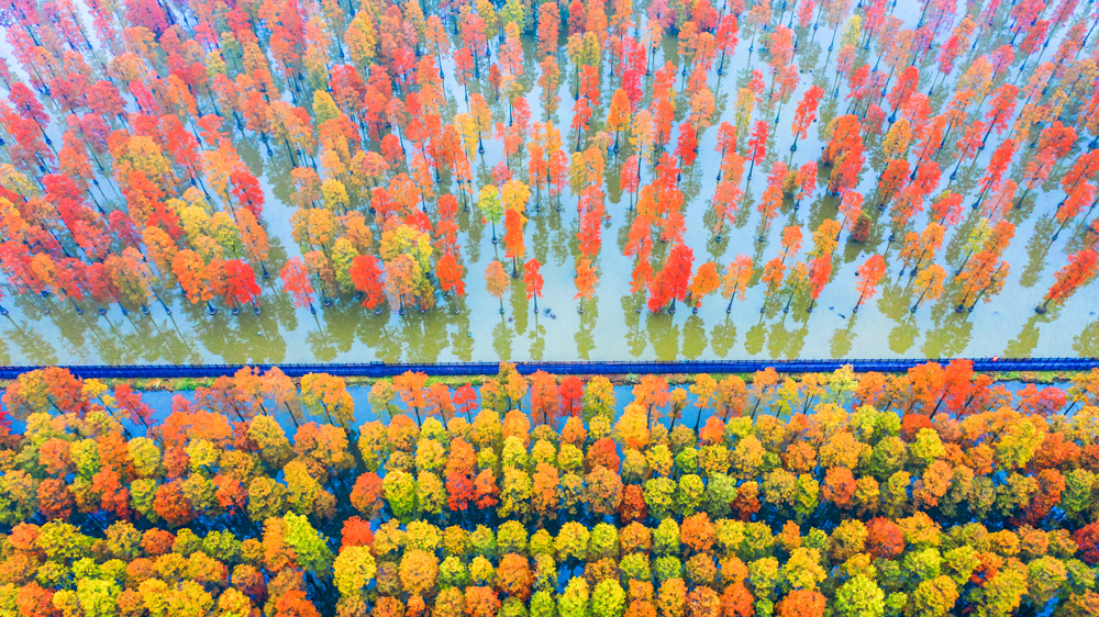 武漢新洲漲渡湖濕地“水上森林”。新華網(wǎng)發(fā) 張斌 攝