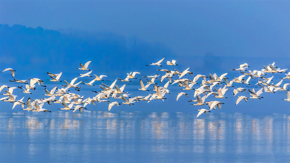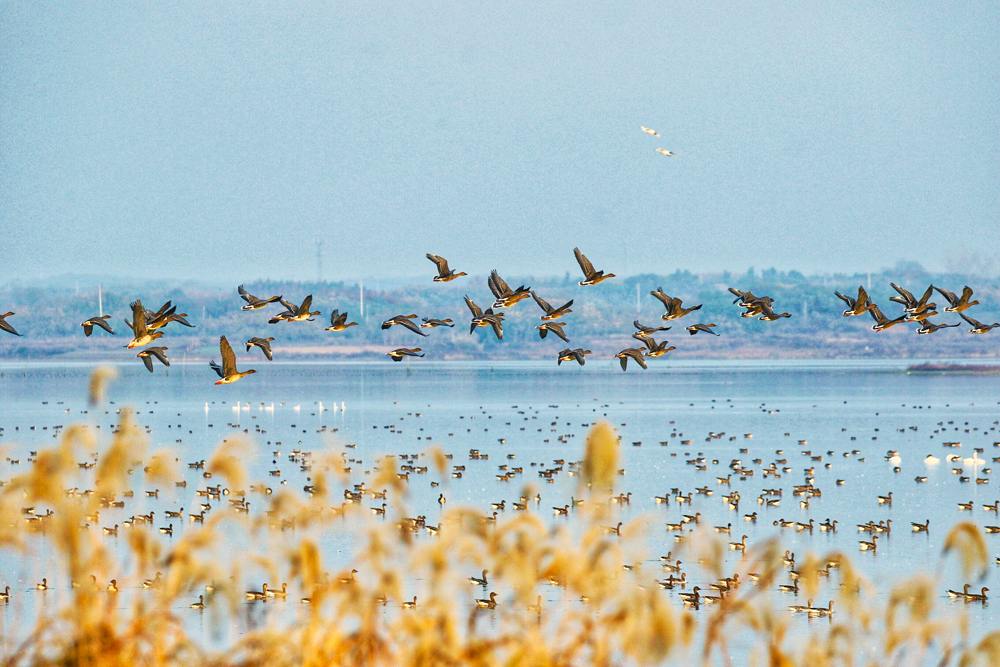 安山國家濕地公園候鳥翔集。新華網(wǎng)發(fā)