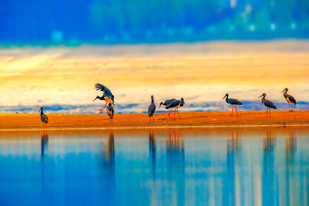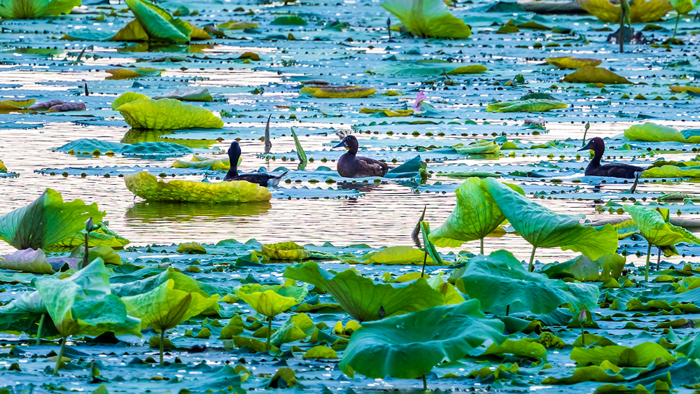 這里,是全球極度瀕危動物青頭潛鴨的“中國最南繁殖地”,它也因此被戲稱“武漢鴨”;也是大名鼎鼎的“五彩斑斕的黑”——國家一級重點(diǎn)保護(hù)野生動物黑鸛,連續(xù)9年擇居的越冬之地;