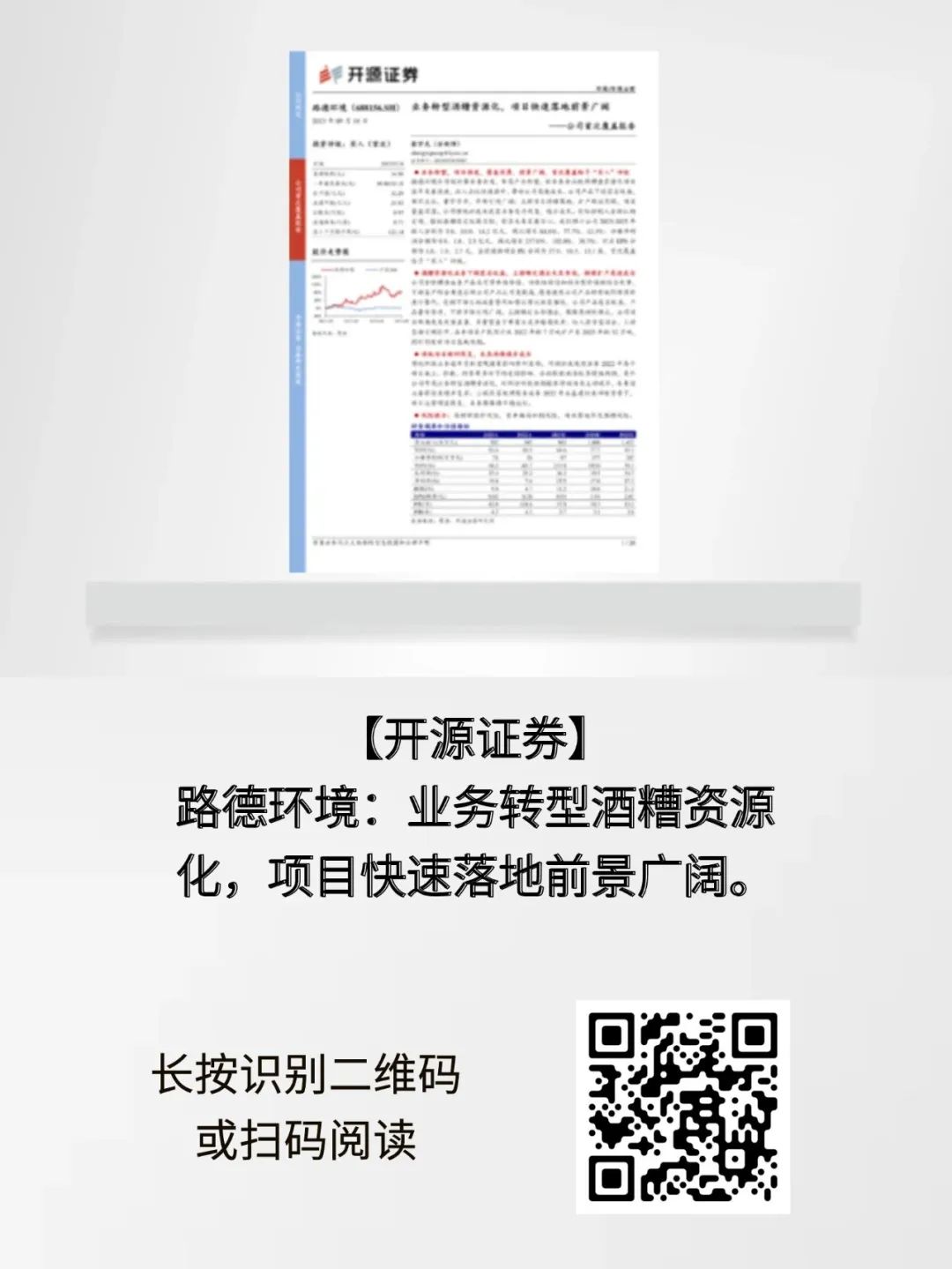 2023年5月18日,開源證券發(fā)布了以《路德環(huán)境:業(yè)務(wù)轉(zhuǎn)型酒糟資源化,項目快速落地前景廣闊》為主題的深度證券研究報告,首次覆蓋路德環(huán)境(股票代碼:688156),給出了“買入”評級。