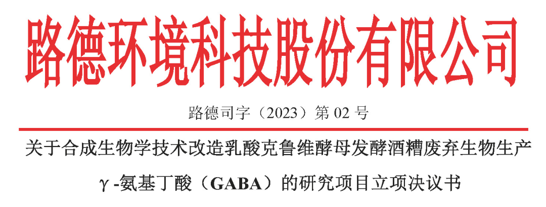 近日,湖北省科技廳公布了2023年省科技計(jì)劃立項(xiàng)項(xiàng)目(第一批)清單,其中,路德環(huán)境“合成生物學(xué)技術(shù)構(gòu)建工程菌發(fā)酵釀酒廢棄物生產(chǎn)γ-氨基丁酸和β-丙氨酸”科研項(xiàng)目,成功入選“科技人才服務(wù)企業(yè)項(xiàng)目”,獲得50萬(wàn)元的科研經(jīng)費(fèi)。