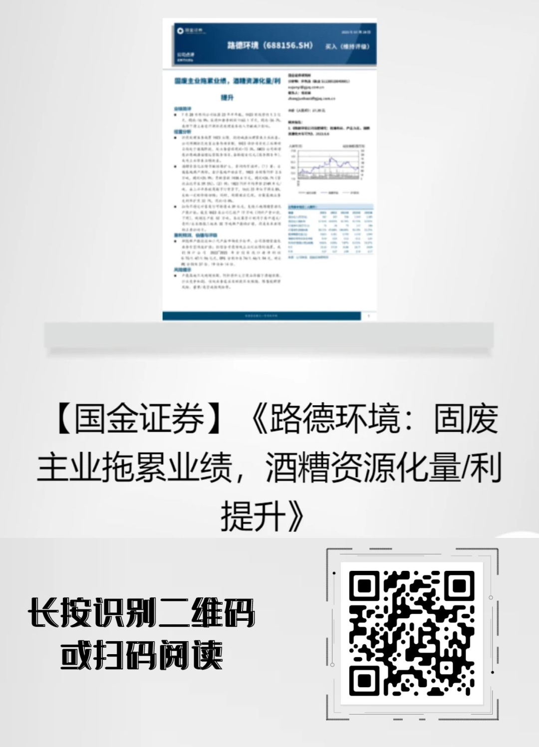 【點(diǎn)評報(bào)告】國金證券點(diǎn)評路德環(huán)境:固廢主業(yè)拖累業(yè)績,酒糟資源化量/利提升。