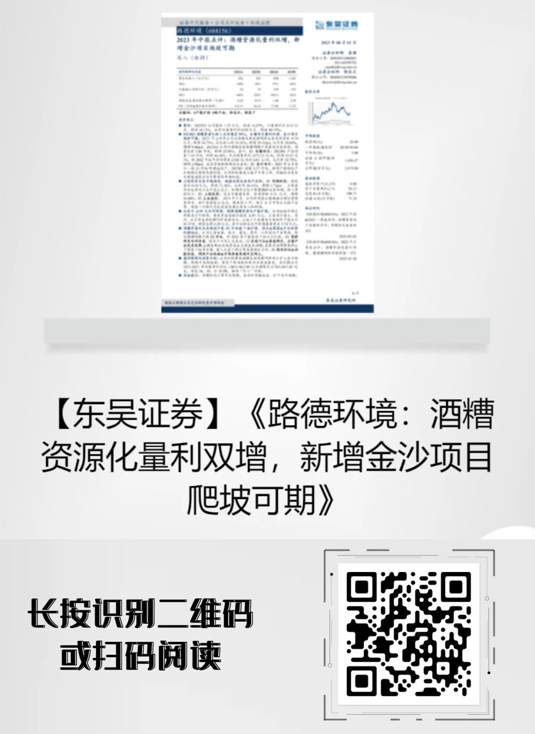 【點評報告】東吳證券點評路德環(huán)境:酒糟資源化量利雙增,新增金沙項目爬坡可期