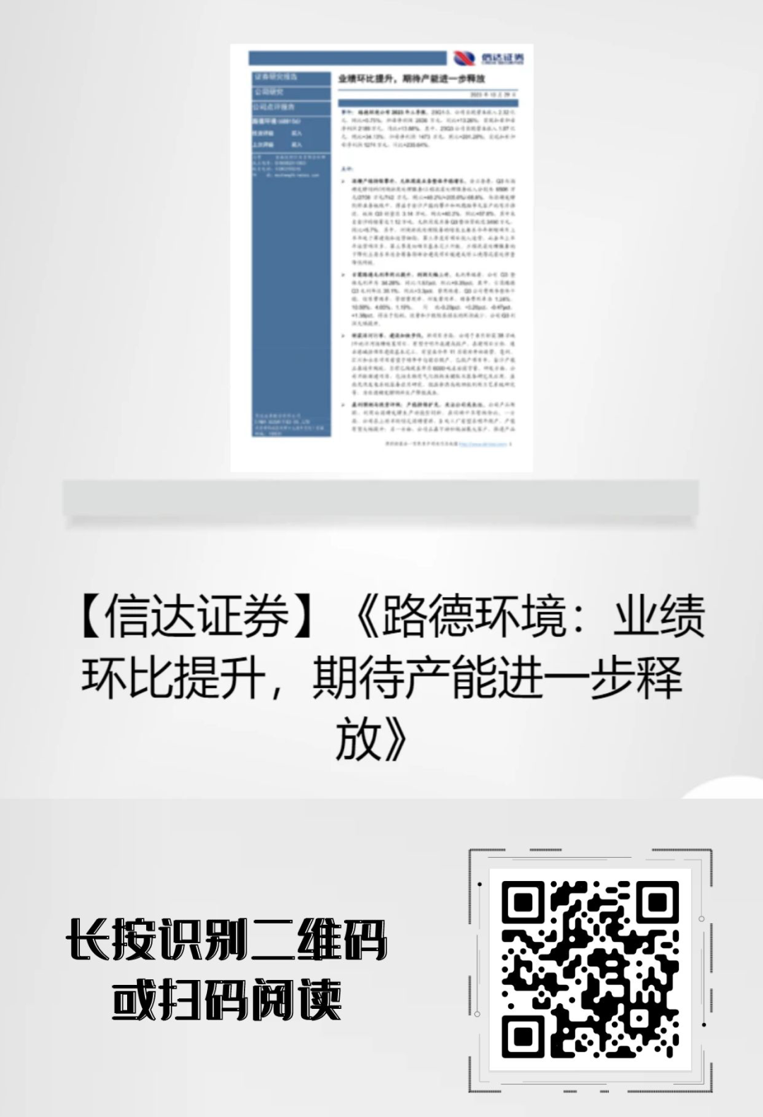 【點評報告】信達證券點評路德環(huán)境:業(yè)績環(huán)比提升,期待產能進一步釋放