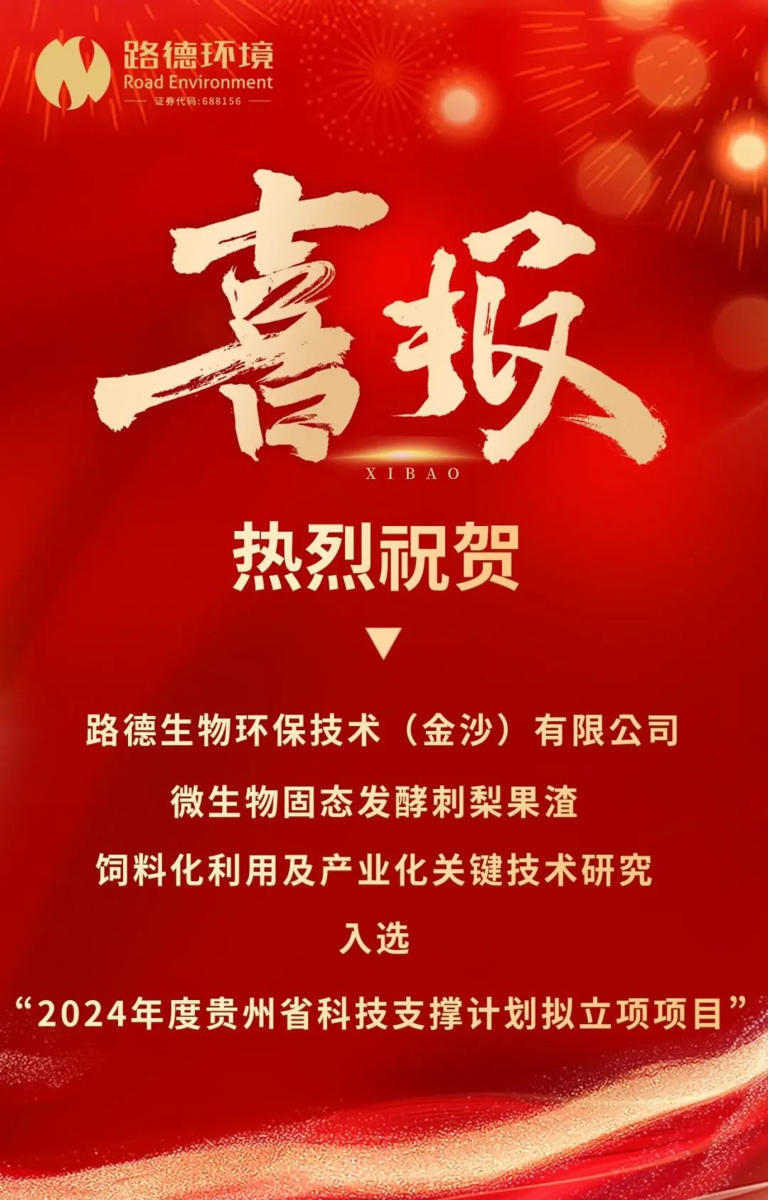 近日,貴州省科學(xué)技術(shù)廳公布了省科技計(jì)劃擬立項(xiàng)項(xiàng)目,路德環(huán)境旗下子公司——路德生物環(huán)保技術(shù)(金沙)有限公司承擔(dān)的“微生物固態(tài)發(fā)酵刺梨果渣飼料化利用及產(chǎn)業(yè)化關(guān)鍵技術(shù)研究”項(xiàng)目,入選“2024年度貴州省科技支撐計(jì)劃擬立項(xiàng)項(xiàng)目”。