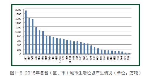 2016年,全國(guó)共有246個(gè)大、中城市向社會(huì)發(fā)布了2015年固體廢物污染環(huán)境防治信息。其中,應(yīng)開(kāi)展信息發(fā)布工作的47個(gè)環(huán)境保護(hù)重點(diǎn)城市和56個(gè)環(huán)境保護(hù)模范城市均已按照規(guī)定發(fā)布信息,另外還有143個(gè)城市自愿開(kāi)展了信息發(fā)布工作(詳見(jiàn)附表一)。經(jīng)統(tǒng)計(jì),此次發(fā)布信息的大、中城市一般工業(yè)固體廢物產(chǎn)生量為19.1億噸,工業(yè)危險(xiǎn)廢物產(chǎn)生量為2801.8萬(wàn)噸,醫(yī)療廢物產(chǎn)生量約為68.9萬(wàn)噸,生活垃圾產(chǎn)生量約為18564.0萬(wàn)噸。2015年,246個(gè)大、中城市生活垃圾產(chǎn)生量18564.0萬(wàn)噸,處置量18069.5萬(wàn)噸,處置率達(dá)97.3%。各?。▍^(qū)、市)發(fā)布的大、中城市生活垃圾產(chǎn)生情況見(jiàn)下圖。
