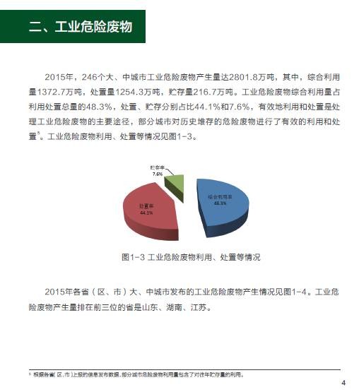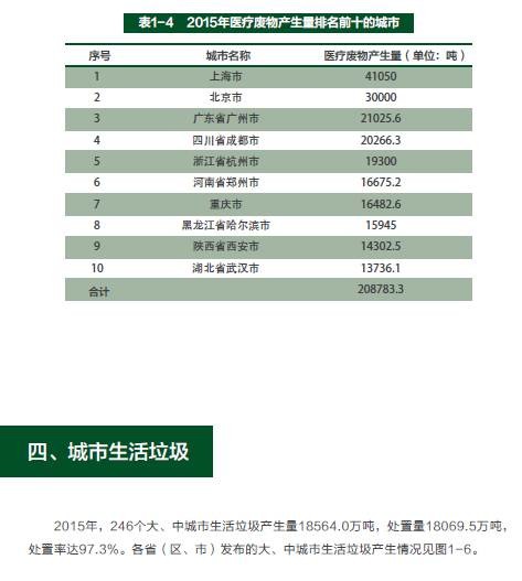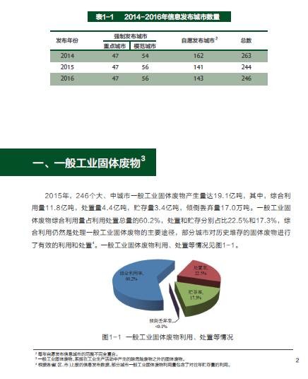 環(huán)保部發(fā)布《2016年全國(guó)大、中城市固體廢物污染環(huán)境防治年報(bào)年報(bào)》,匯總分析了全國(guó)246個(gè)大中城市發(fā)布的固體廢物污染防治信息,系統(tǒng)總結(jié)了固體廢物污染環(huán)境防治工作情況,并選擇部分具有代表性的省份介紹他們的工作經(jīng)驗(yàn)。