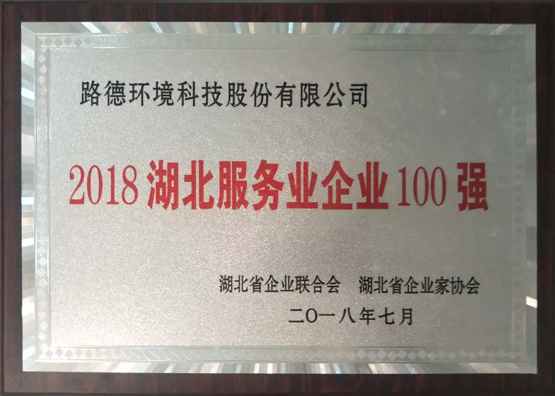 熱烈祝賀“路德環(huán)境科技股份有限公司”榮膺 2018 湖北服務(wù)業(yè)企業(yè)100強