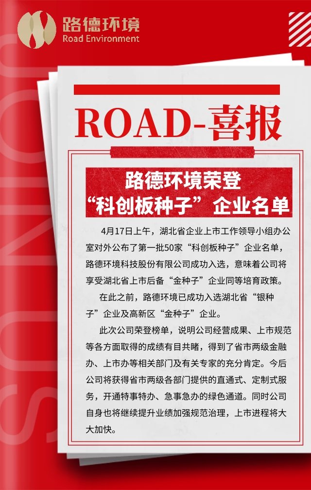 熱烈祝賀路德環(huán)境榮登 湖北省“科創(chuàng)板種子”企業(yè)名單